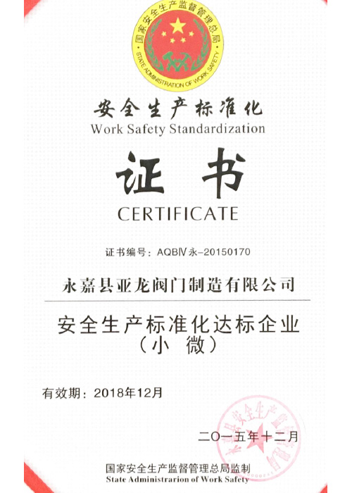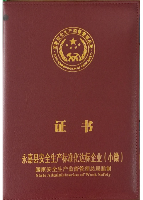 安全生產(chǎn)標(biāo)準(zhǔn)化達標(biāo)企業(yè)證書